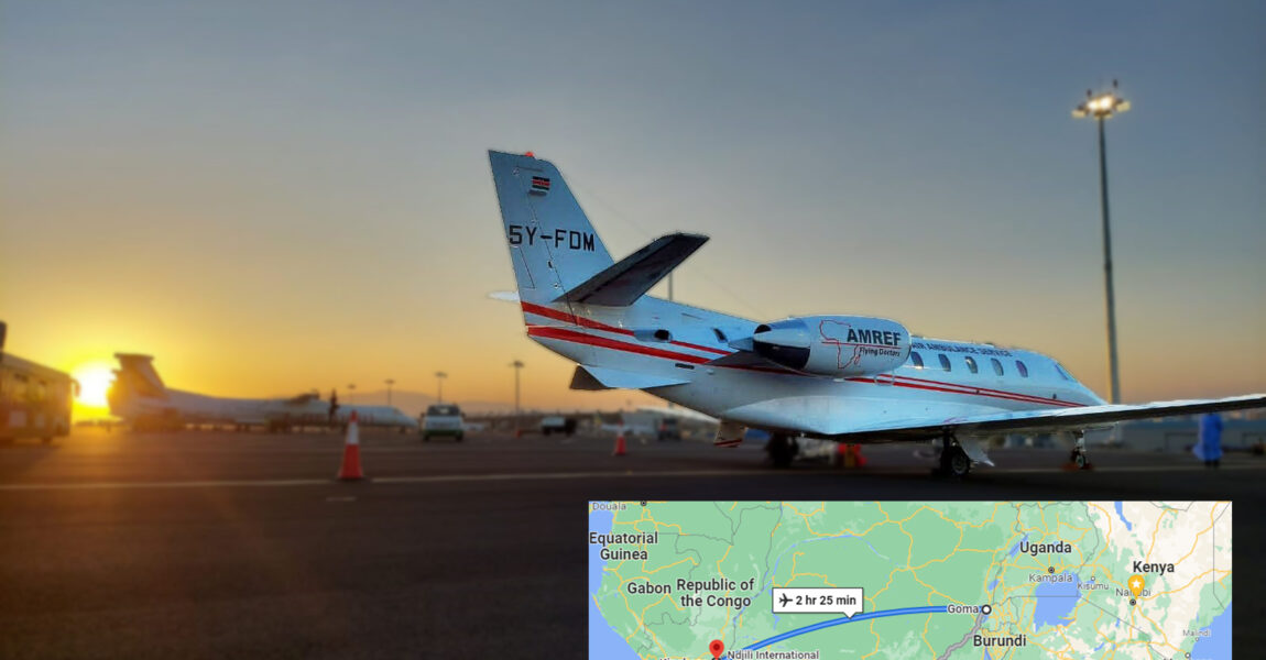 The crew landed at Goma Airport two hours after taking off from Nairobi. The patient was stabilized for transfer to Kinshasa. After the AMREF Flying Doctors’ air ambulance landed at Kinshasa Airport, we successfully handed over the patient to the receiving hospital for their care.